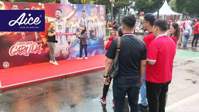 Foto 'di depan' Messi dan Angel Di Maria juga banyak dilakukan oleh suporter Timnas sebagai kenang-kenangan tanda menyaksikan Indonesia vs Argentina.
