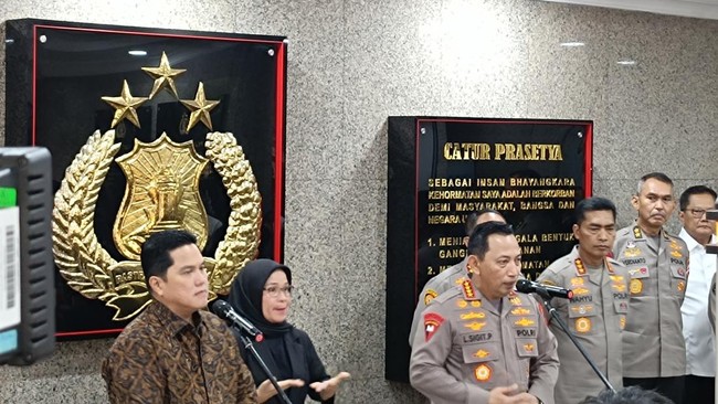 "Makanya hari ini bertemu dengan Polri untuk sinkronisasi hal-hal yang diharapkan agar pertandingan nanti bisa berjalan baik dan maksimal," ucap Erick Thohir.