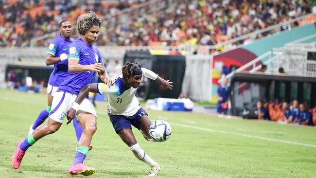 Inggris vs Brasil tersaji dalam matcday ketiga Grup C di Jakarta International Stadium (JIS), Jumat (17/11/2023) malam WIB. Pertandingan ini dihadiri 15.171 penonton.