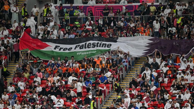 Salah satu dukungan untuk Palestina sempat disuarakan di Piala Dunia 2022 yang berlangsung di Qatar. Bendera-bendera Palestina kerap berkibar di tribune stadion.