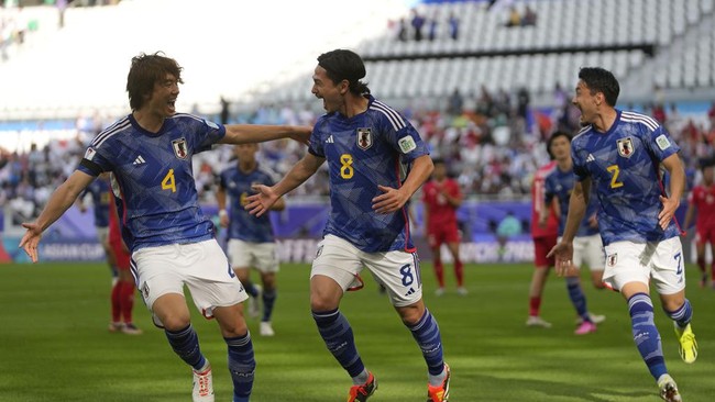 Jepang vs Vietnam pada laga Grup D Piala Asia 2023 berlangsung di Al Thumama Stadium, Minggu (14/1/2023). Samurai Biru membuka keunggulan di menit ke-12.