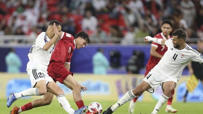 Indonesia kalah dengan skor 1-3 di Stadion Ahmad Bin Ali, Senin (15/12/2024). Gol-gol Irak dicetak oleh Mohanad Ali (17'), Osama Rashid (45+7'), dan Aymen Hussein. Sementara gol Indonesia dicetak Marselino Ferdinan (37').