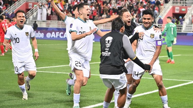Indonesia memastikan lolos ke 16 besar usai terbantu hasil imbang Kirgistan vs Oman. Bermain di Abdullah bin Khalifa Stadium, Doha, Kamis (25/1/2024), laga tersebut berakhir 1-1.