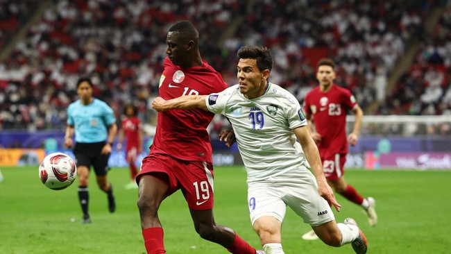 Qatar vs Uzbekistan tersaji di perempatfinal yang berlangsung di Al Bayt Stadium, Sabtu (3/2/2024) malam WIB. Pertandingan berjalan seimbang selama 20 menit dengan kedua tim sama-sama mampu memberikan ancaman.