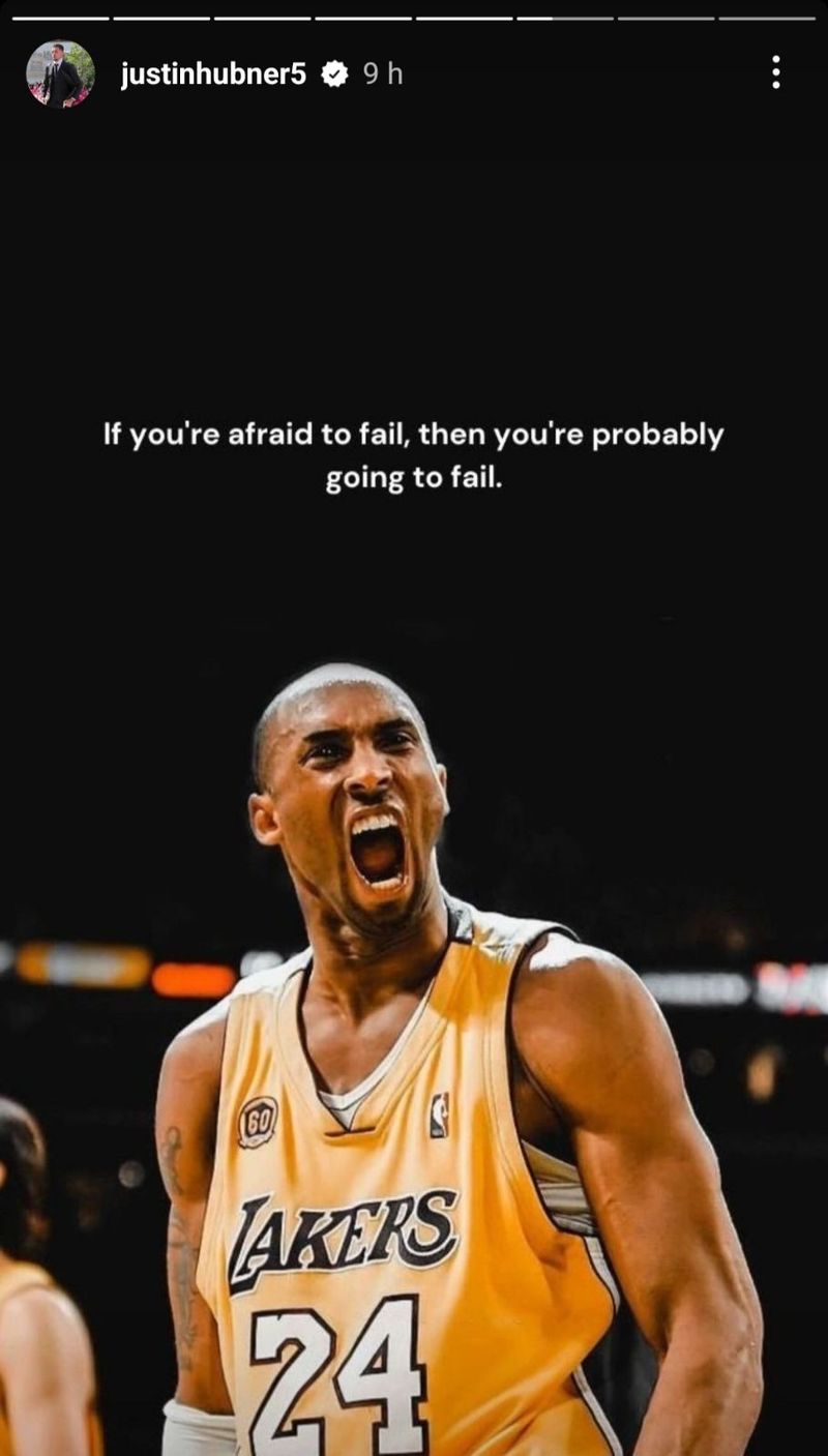 "If your'e afraid to fail, then you're probably going to fail (Jika Anda takut gagal, maka Anda mungkin akan gagal)," bunyi kalimat Kobe Bryant yang diunggah Hubner.