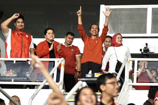 Presiden Jokowi ditanya berapa prediksi skor hasilnya. Jokowi tidak menjawab, hanya kembali menegaskan kalau Timnas Indonesia bisa menang.
