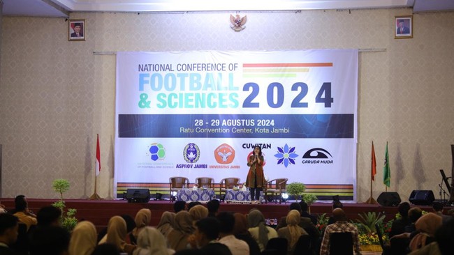 Acara dibuka di Ratu Convention Center, Jambi, Rabu (28/8/2024). Wakil Ketua Umum PSSI, Ratu Tisha Destria, turut hadir di ajang ini. Ada pula keynote speaker, serta Rektor Universitas Jambi, Prof. Dr. Helmi, S.H., M.H.