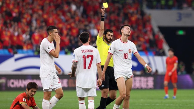 Timnas Indonesia kalah dari 1-2 Timnas China di Qingdao Youth Football Stadium pada Kualifikasi Piala Dunia 2026 zona Asia ronde ketiga Grup C, Selasa (15/10/2024). Tim Garuda tertinggal dua gol di babak pertama akibat torehan dari Behram Abduwelli (menit ke-23) dan Yuning Zhang (menit ke-44). Pasukan Shin Tae-yong hanya bisa membalas satu gol lewat Thom Haye di menit ke-86.