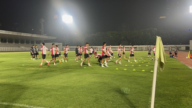 Timnas Indonesia kembali menjalani latihan di Stadion Madya pada Minggu (17/11/2024). Latihan berlangsung pukul 18.00 WIB dan dihadiri oleh seluruh penggawa terkecuali Kevin Diks.