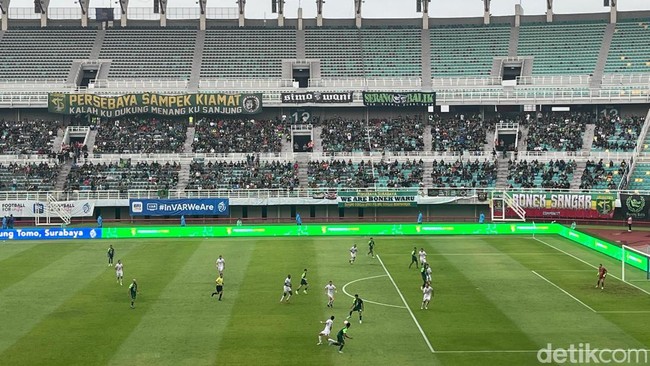 Dalam pertandingan di Stadion Gelora Bung Tomo (GBT) Surabaya, Persebaya sudah melancarkan tekanan sedari menit-menit awal ke lini bertahan Persik.