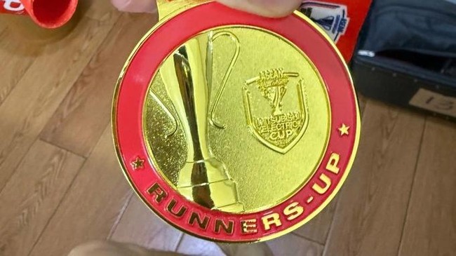 Ada yang tak biasa dari medali juara Piala AFF 2024 yang diterima penyerang Vietnam Nguyen Tien Linh. Warna medalinya memang emas, namun ternyata tertulis 'runners-up'. Kok bisa?