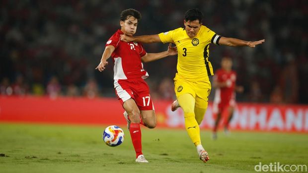 Peluang emas didapat Indonesia pada menit ke-57. Bola tap-in Jens Raven dari umpan tarik Achmad Maulana bisa diblok kiper Malaysia, Zulhilmi Sharani.