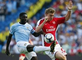 Peluang bersih pertama dalam laga di City of Manchester Stadium, Sabtu (12/9/2009) malam WIB, dimiliki tim tamu lewat tendangan sudut Robin van Persie. Bola yang dia kirim ke tengah kotak penalti tepat mengarah ke William Gallas yang berdiri tanpa kawalan, namun sepakan gelandang Prancis itu masih melayang ke atas gawang.