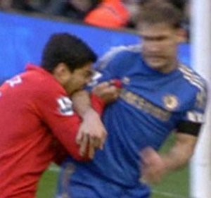 Suarez terlihat menggigit lengan Branislav Ivanovic kendati lolos dari hukuman di atas lapangan karena wasit tidak menyaksikan kejadian tersebut. Suarez lalu mencetak gol yang membuat skor jadi 2-2 dan menyelamatkan timnya dari kekalahan.