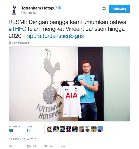 Janssen, yang ibunya bernama Anna Maria Theodora Petra Verstappen, dan merupakan atlet renang loncat indah legendaris Belanda, peraih tiga medali emas Olimpiade, akan menambahkan opsi penyerangan buat Tottenham. Sebab, sebelumnya pelatih Mauricio Pochettino hanya memiliki Harry Kane sebagai penyerang murni yang mumpuni.