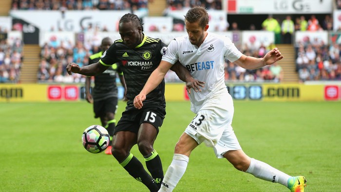 Swansea menahan imbang Chelsea 2-2 dalam laga di Liberty Stadium, Minggu (11/9/2016) malam WIB. Tertinggal dulu usai dibobol Diego Costa di menit ke-18, Swansea bangkit dan membalas melalui eksekusi penalti Gylfi Sigurdsson pada menit ke-59 dan sepakan Leror Fer di menit ke-62.