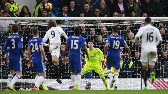 Dalam pertandingan di Stamford Bridge, Sabtu (25/2/2017) malam WIB, Chelsea tampil sangat dominan. Dengan penguasaan bola mencapai 68%, Chelsea tercatat melepaskan tujuh tembakan. Sementara Swansea hanya melaepaskan dua tembakan sepanjang babak pertama.