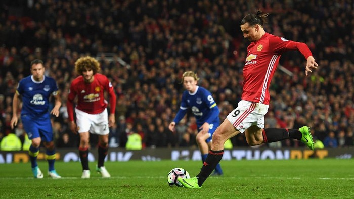 Manchester - Manchester United selamat dari kekalahan. Tertinggal lebih dahulu, gol penalti Zlatan Ibrahimovic di penghujung laga memaksakan hasil seri 1-1 melawan Everton.