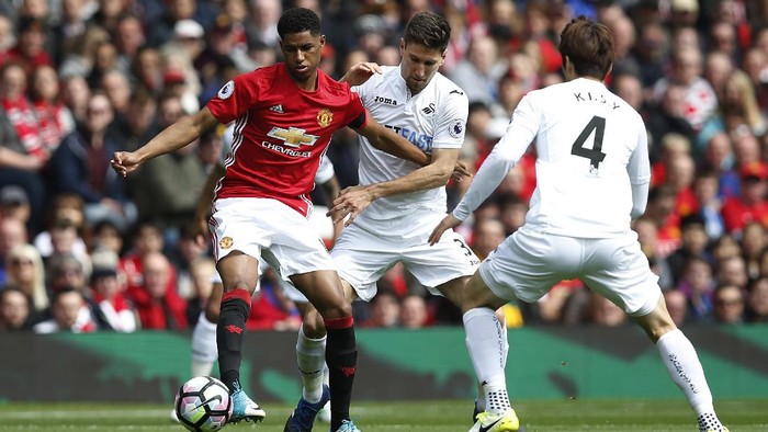 Gantian Lukasz Fabianski membuat penyelamatan di bawah mistar gawang Swansea, setelah Jesse Lingard yang lolos dari jebakan offside melepaskan sontekan tepat di depan gawang pada menit ke-17.