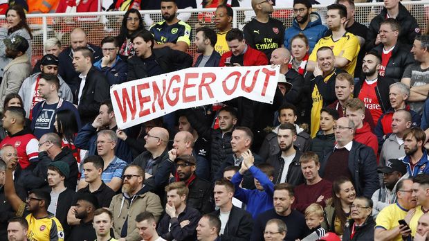 Spanduk berisi desakan mundur kepada Arsene Wenger (Foto: Reuters / Stefan Wermuth) |