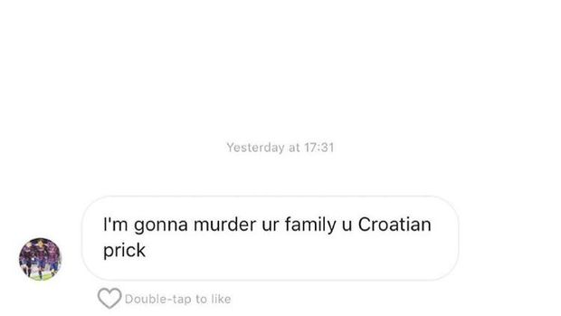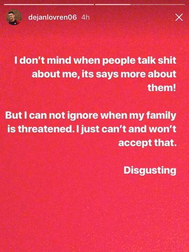 Lovren mengunggah screenshot sebuah pesan dari seseorang yang berbunyi "saya akan membunuh keluargamu". Pesepakbola berusia 28 tahun itu kemudian mengungkapkan kekesalannya.