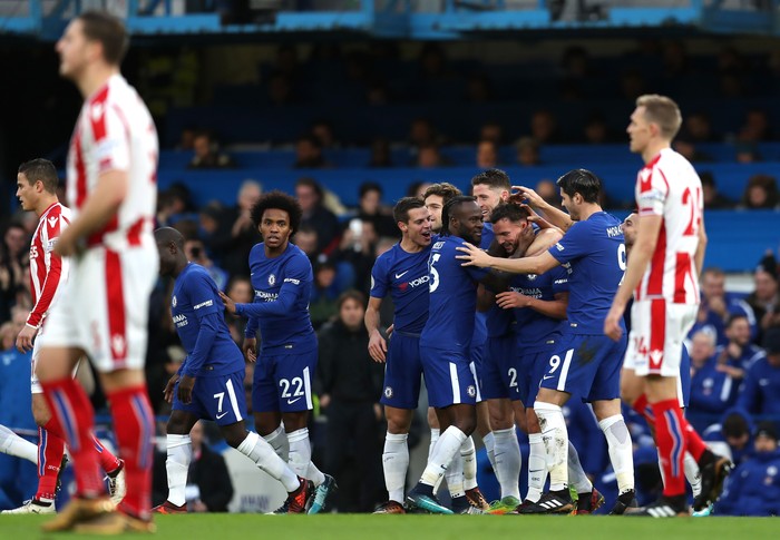 Setelah turun minum, wasit menghadiahi Chelsea dengan penalti yang sukses diselesaikan Willian. Di menit-menit akhir, Davide Zappacosta menjebol gawang Stoke yang menyudahi pesta gol tim tuan rumah.