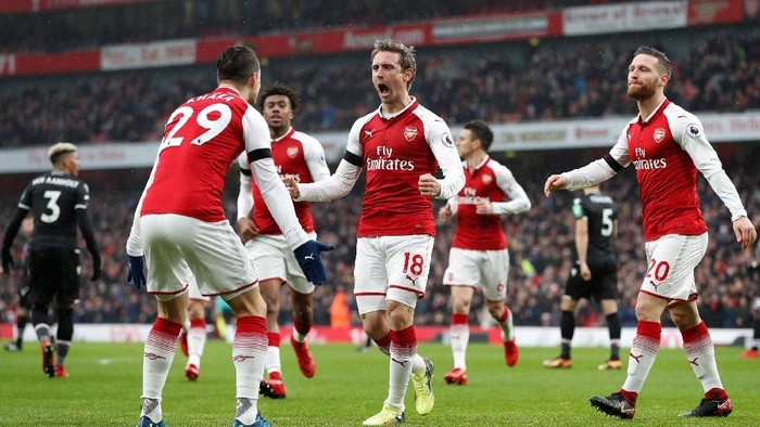Cuma butuh enam menit bagi Arsenal untuk unggul lewat Nacho Monreal. Di menit ke-10, keunggulan tuan rumah bertambah menjadi 2-0 lewat Alex Iwobi.