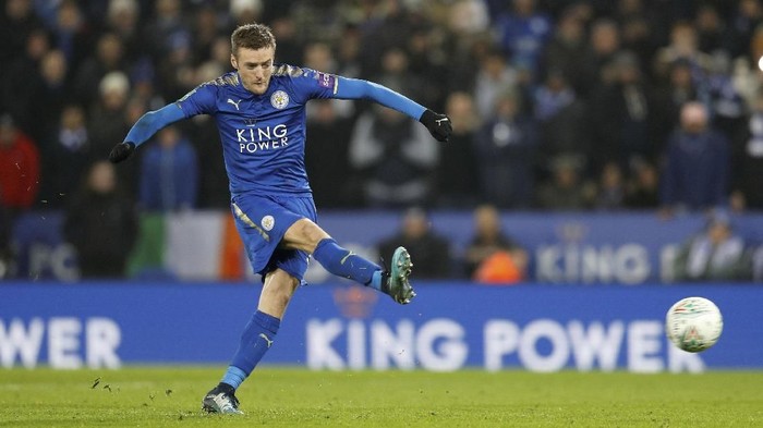 Vardy sejauh ini sudah membuat 10 gol di Premier League. Dia tertinggal jauh dari Harry Kane yang sudah melesakkan 21 gol. (din/mrp)