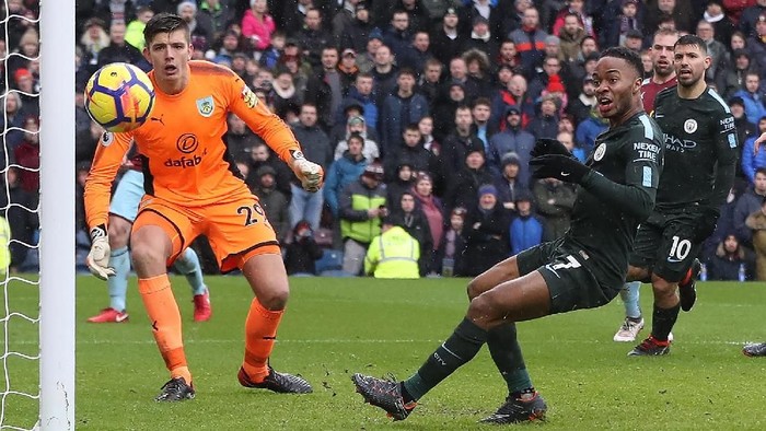 Namun apa yang terjadi sebaliknya. Sterling gagal mengonversinya menjadi gol. Bola melenceng ke samping gawang Burnley.