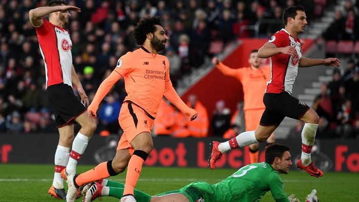 Firmino dan Salah melakukan kerja sama satu-dua di depan kotak penalti Southampton. Firmino, yang membelakangi gawang, meneruskan bola kepada Salah yang kemudian dengan tenang menuntaskannya menjadi gol.
