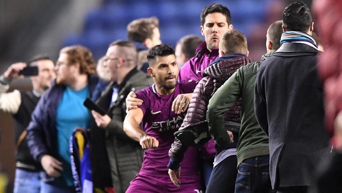 Setelah pertandingan di DW Stadium, banyak suporter Wigan meluapkan kegembiraannya dengan menyerbu ke lapangan. Seorang suporter mendekati Aguero dari belakang dan terlihat berusaha mengatakan sesuatu.
