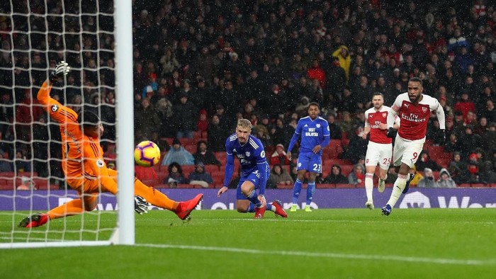 Arsenal menang 2-1 saat menjamu Cardiff di Emirates, Rabu (30/1/2019) dinihari WIB. Pierre-Emerick Aubameyang dan Alexandre Lacazette mencetak gol di menit ke-66 dan 83, sementara balasan Cardiff datang dari Nathaniel Mendez-Laing di masa injury time.