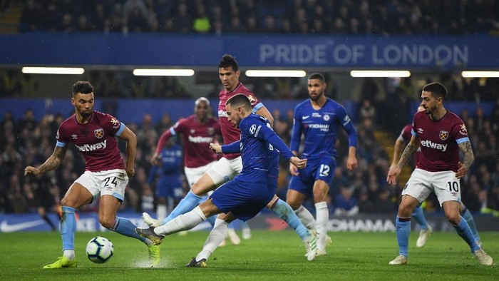 Chelsea menang 2-0 saat menjamu West Ham di Stamford Bridge, Selasa (9/4/2019) dinihari WIB di lanjutan Liga Inggris. Kedua gol dicetak oleh Eden Hazard, masing-masing di menit ke-24 dan 90.