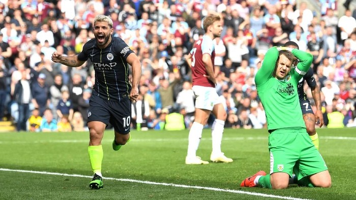 Aguero menjadi starter saat City melawat ke Turf Moor, Minggu (28/4/2019). Setelah ditahan Burnley tanpa gol sampai 10 menit terakhir waktu normal pertandingan, City akhirnya memecah kebuntuan dengan gol Aguero di menit ke-83.