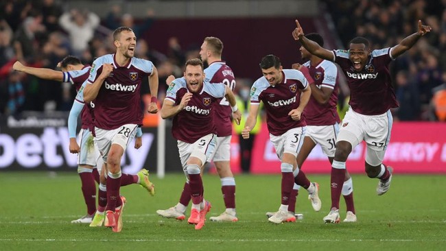 Jack Grealish sempat memperpanjang nafas Man City saat tembakannya ke arah tengah berbuah gol. Namun, Said Benrahma maju menjadi pahlawan West Ham saat tembakannya dari 12 pas berbuah gol. West Ham menang 5-3 lewat adu penalti.