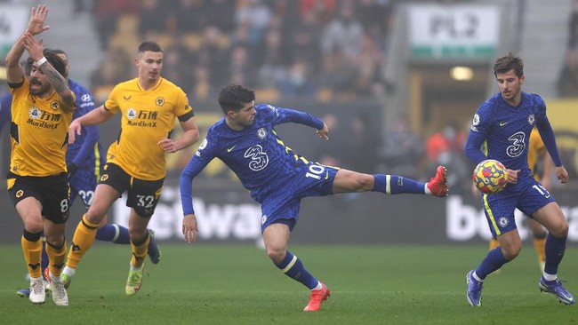 Wolves vs Chelsea berlangsung di Molineux Stadium, Minggu (19/12/2021) malam WIB. The Blues langsung punya peluang di menit pertama lewat Reece James yang memanfaatkan umpan lambung N'Golo Kante, tapi kontrol buruk membuat peluang menjadi sia-sia.
