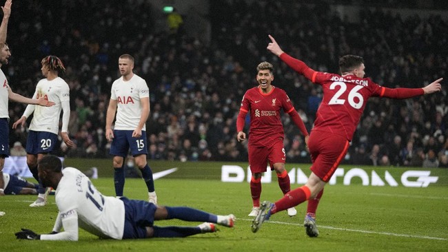 Pertemuan Tottenham Hotspur vs Liverpool di Tottenham Hotspur Stadium, Minggu (19/12/2021) malam WIB dalam lanjutan Liga Inggris tuntas 2-2. Tuan rumah unggul duluan lewat Harry Kane, lalu Liverpool membalikkan kedudukan melalui Diogo Jota dan Andy Robertson.