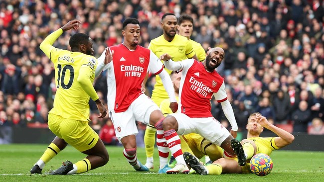 Alexandre Lacazette sempat merobek gawang Brentford di menit ke-12. Hakim garis menganulirnya karena Lacazette dalam posisi offside saat menyambar bola umpan silang.