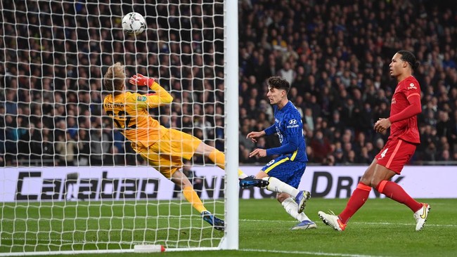 Chelsea kalah adu penalti 10-11 dari Liverpool dalam final Carabao Cup di Wembley, Minggu (27/2/2022) malam WIB. Kedua tim berimbang 0-0 sepanjang 120 menit, dalam laga yang diwarnai empat gol dianulir dan berbagai peluang besar.