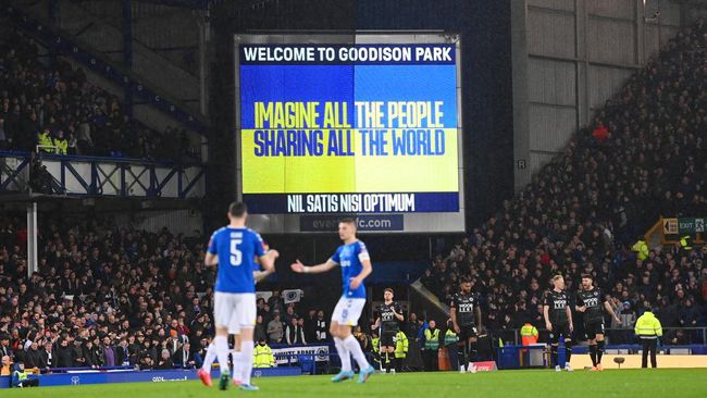 Ada momen spesial saat Everton menjamu Boreham Wood dalam laga Piala FA. The Toffees membentangkan spanduk Ukraina bertuliskan lirik lagu John Lennon.