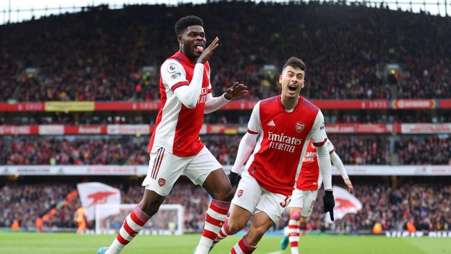 Arsenal menumbangkan Leicester City 2-0 di Emirates Stadium pada laga lanjutan Liga Inggris, Senin (14/2/2022) dini hari WIB. Dua gol kemenangan The Gunners dibuat oleh Thomas Partey dan penalti Alexandre Lacazette.