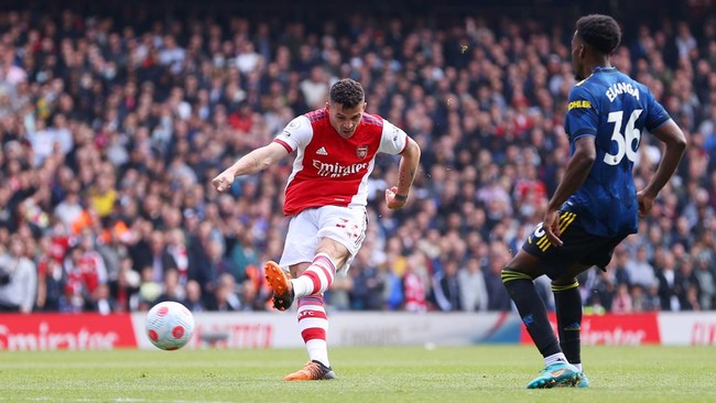 Arsenal vs Man United tersaji di Emirates Stadium dalam lanjutan Liga Inggris, Sabtu (23/4/2022) malam WIB. Arsenal memimpin 2-0 lebih dulu lewat Nuno Tavares dan Bukayo Saka.