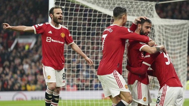 Manchester United bertemu Brentford dalam lanjutan Liga Inggris. Tim besutan Ralf Rangnick memimpin 1-0 di babak pertama.