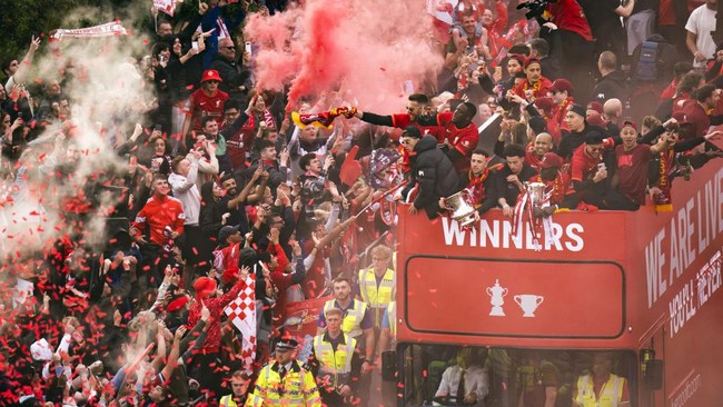 Tak sampai 24 jam usai kekalahan tersebut, The Reds menggelar parade dengan bus terbuka di jalanan Liverpool. Virgil van Dijk dkk. mengarak dua trofi yang dimenangi Liverpool musim ini: Piala FA dan Carabao Cup.