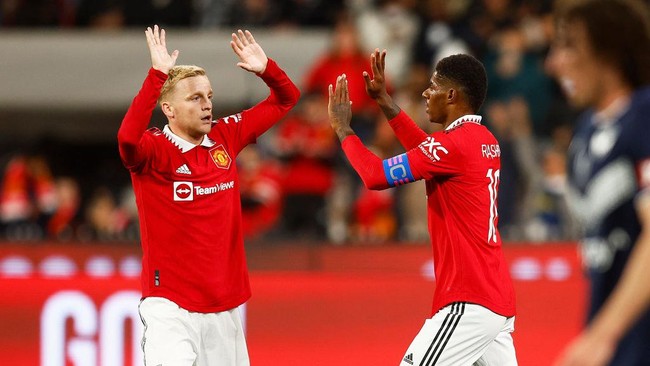 Sundulan Rashford pada menit ke-83 tepat di pelukan kiper Melbourne Victory, Paul Izzo. Amad Diallo yang menjadi pengumpannya.