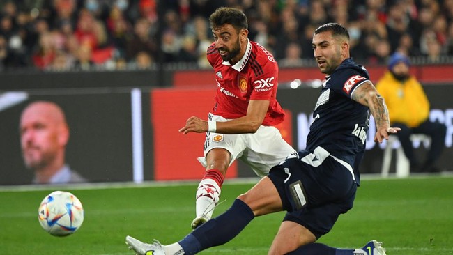 Manchester United melanjutkan tur pramusimnya dengan menghadapi Melbourne Victory di Melbourne Cricket Ground, Jumat (15/7/2022). 'Setan Merah' langsung kebobolan di menit kelima oleh Christopher Ikonomidis.