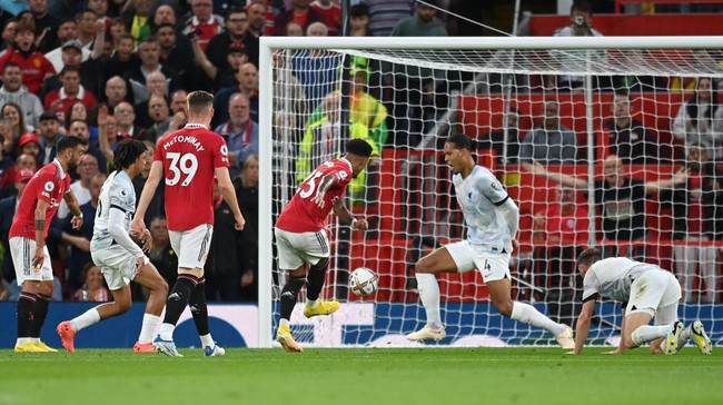 Manchester United berhasil mengalahkan Liverpool 2-1 dalam lanjutan Liga Inggris, Selasa (23/8/2022) dini hari WIB. Gol MU dicetak oleh Jadon Sancho dan Marcus Rashford, sementara itu Mohamed Salah bikin gol untuk The Reds.