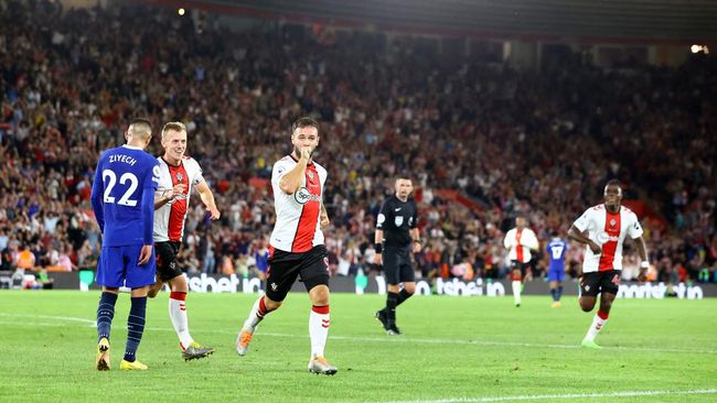 Southampton vs Chelsea berlangsung di St Mary's Stadium, Rabu (31/8/2022) dini hari WIB. Soton tertinggal lebih dulu lewat gol Raheem Sterling di menit ke-23, namun bisa membalikkan keadaan lewat gol-gol Romeo Lavia di menit ke-28 dan Adam Armstrong pada menit ke-45.