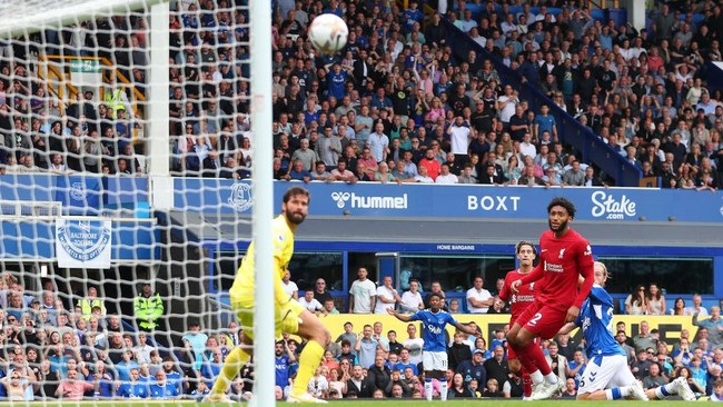 Ancaman dari Everton datang di menit ke-22. Anthony Gordon melepaskan tembakan dari luar kotak penalti memanfaatkan bola liar dari sepak pojok, Alisson Becker berada di posisi yang pas untuk menangkap bola.