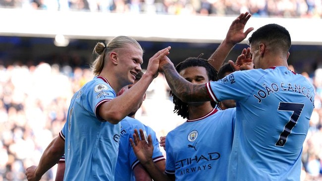 Pada pertandingan yang dihelat di Etihad Stadium, Sabtu (8/10/2022) malam WIB, City unggul dua gol di babak pertama lewat Joao Cancelo dan Phil Foden. Dua gol lagi di babak kedua dari Riyad Mahrez dan Erling Haaland.